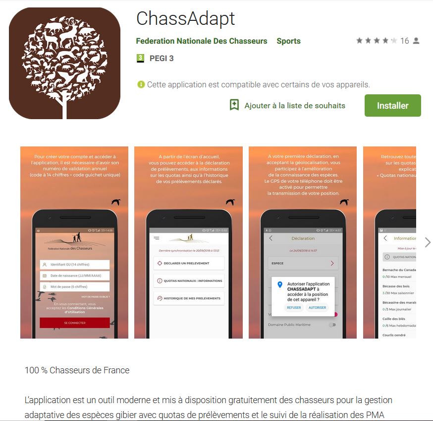 En test cette saison, pour ses utilisateurs elle remplacera à terme les carnets papier et languettes (bagues) des espèces soumises à déclaration de prélèvement.