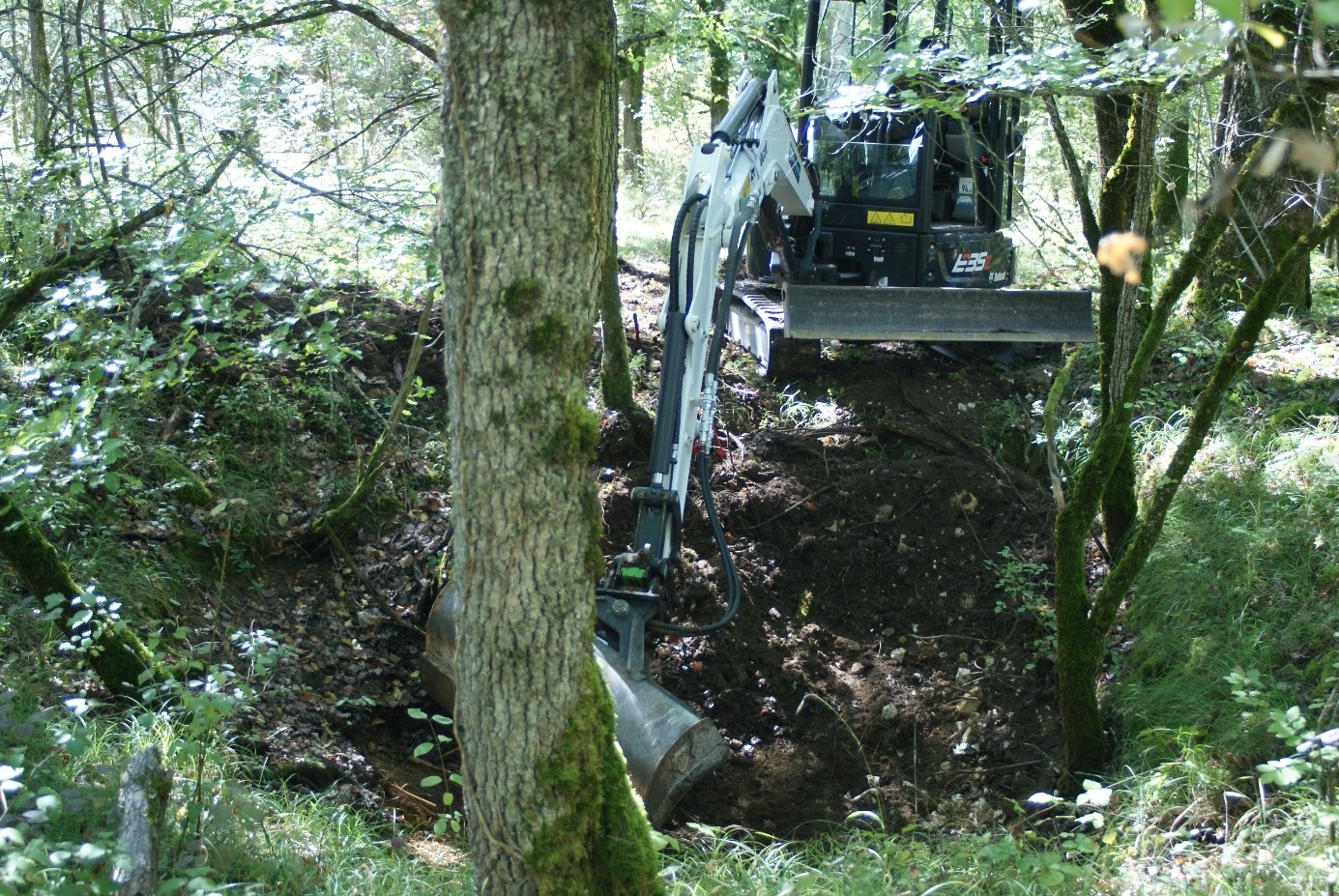 Ainsi, les travaux de restauration sur les mares de la Basses Vallée du Lot ont eu lieu à la fin du mois de Septembre 2020. Au programme : réouverture des mares embroussaillées, curage des mares comblées et création de pentes douces pour une végétation diversifiée et un accès à l'eau facilité pour la faune sauvage.