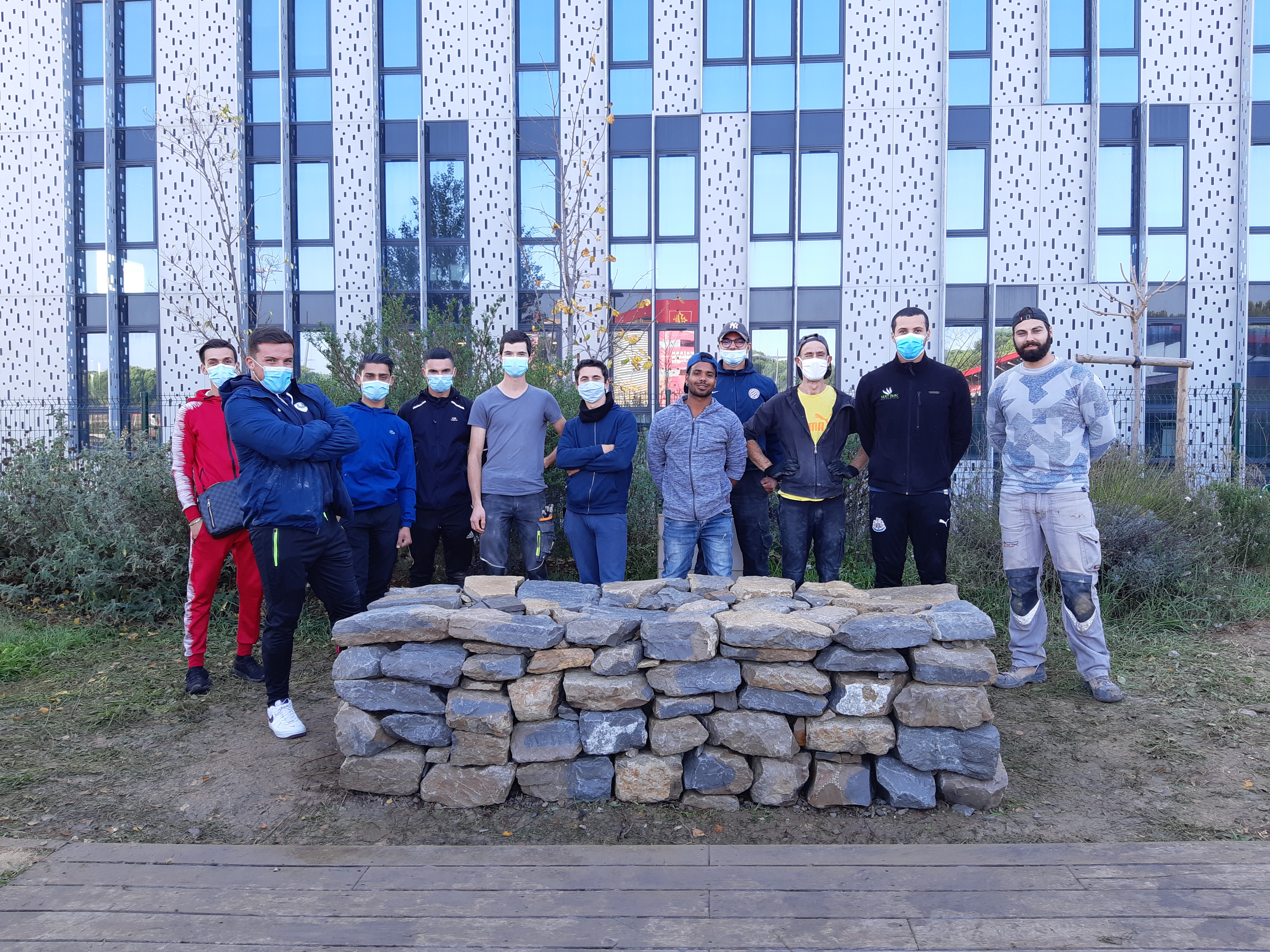 Dans le cadre d'un projet d'aménagement extérieur financé par la Région Occitanie, les travaux de construction d'un mur en pierres sèches se sont déroulés lors du mois de novembre. Cette action vise à compléter l'offre pédagogique existante. Cet ouvrage réalisé par les élèves du CFA Agropolis de Montpellier va rejoindre une série d'installations visant à sensibiliser à la biodiversité et aux savoir-faire locaux. En effet, ce projet s'inscrit dans le programme pédagogique du CAPA jardinier paysagiste.