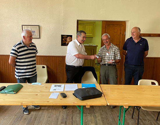 Remise du trophée 2020 à Monsieur André Nougarol, Président de l'AICA du Castillonais ( De gauche à droite : Monsieur Patrick Laffont, Mr JL Fernandez, Mr André Nougarol et Mr Patrick Timbart)