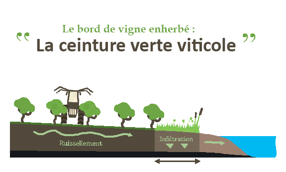 En effet, les tournières, situées à chaque bout des rangées de vigne, constituent une interface non productive, essentiellement utile à la circulation des engins. Cet espace peut être enherbé pour bénéficier de plusieurs effets positifs. Le couvert herbacé joue un rôle primordial en tant que tampon entre les agrosystèmes et les milieux naturels pour lutter contre la diffusion des pollutions agricoles. L'enherbement permet aussi l'accueil d'une biodiversité végétale et animale plus importante. Il permet ainsi de répondre à diverses menaces : raréfaction du petit gibier, diminution des pollinisateurs et auxiliaires, menace de disparition des plantes messicoles et fragmentation des habitats.