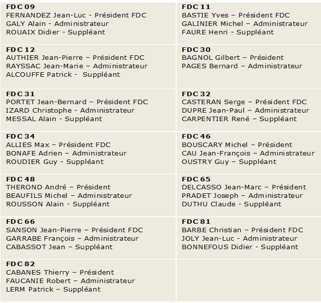 Composé de 26 membres et 13 membres suppléants, issus des Fédérations Départementales, le Conseil d'Administration tout fraichement installé, a aussitôt procédé à l'élection du Bureau.