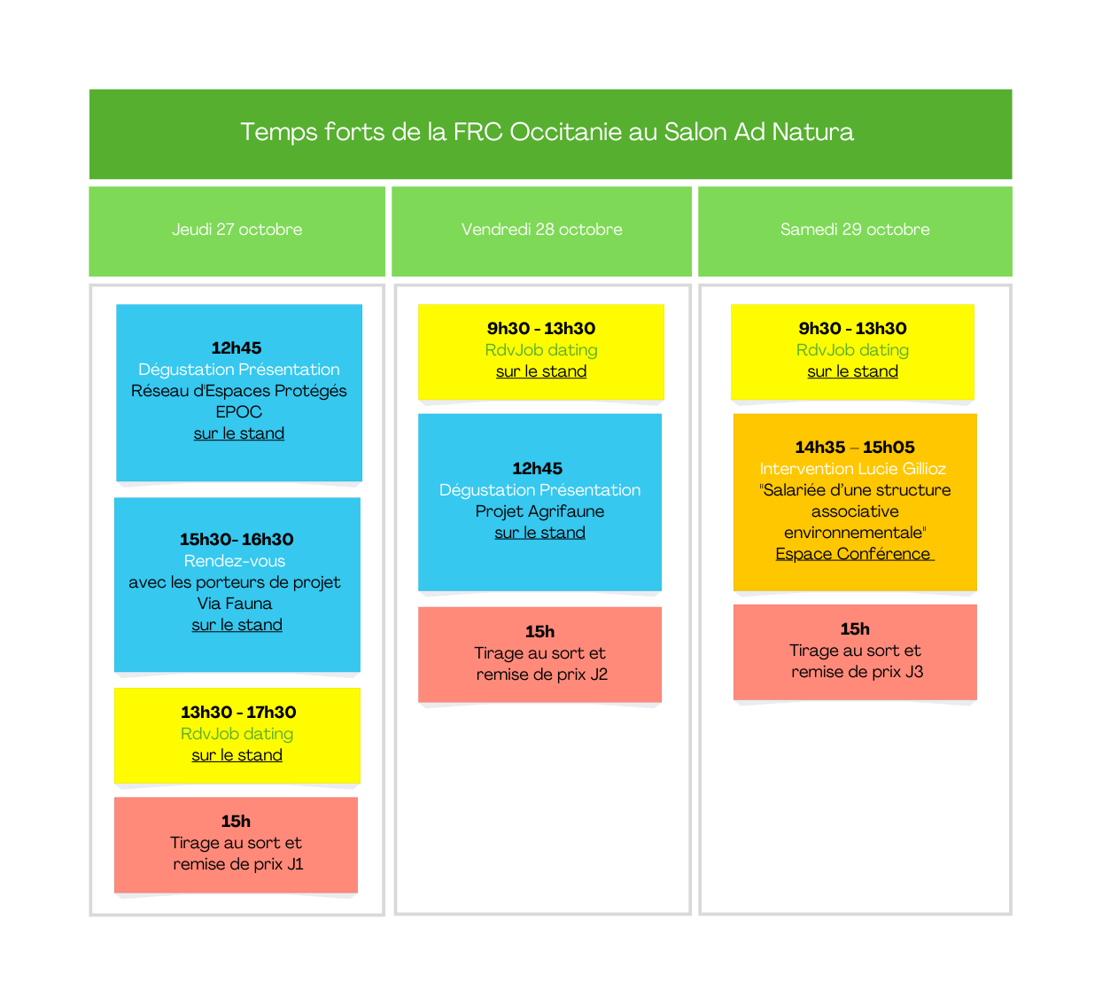 e 27,28 et 29 octobre à l'occasion du Salon National des professionnels de l'Ecologie salon Ad Natura, la Fédération Régionale des chasseurs d'Occitanie tiendra un stand dédié aux projets : Agrifaune et CYNEP. L'occasion également pour les visiteurs de découvrir les métiers proposés en fédérations des chasseurs et échanger avec les responsables des différents projets conduits en Occitanie.