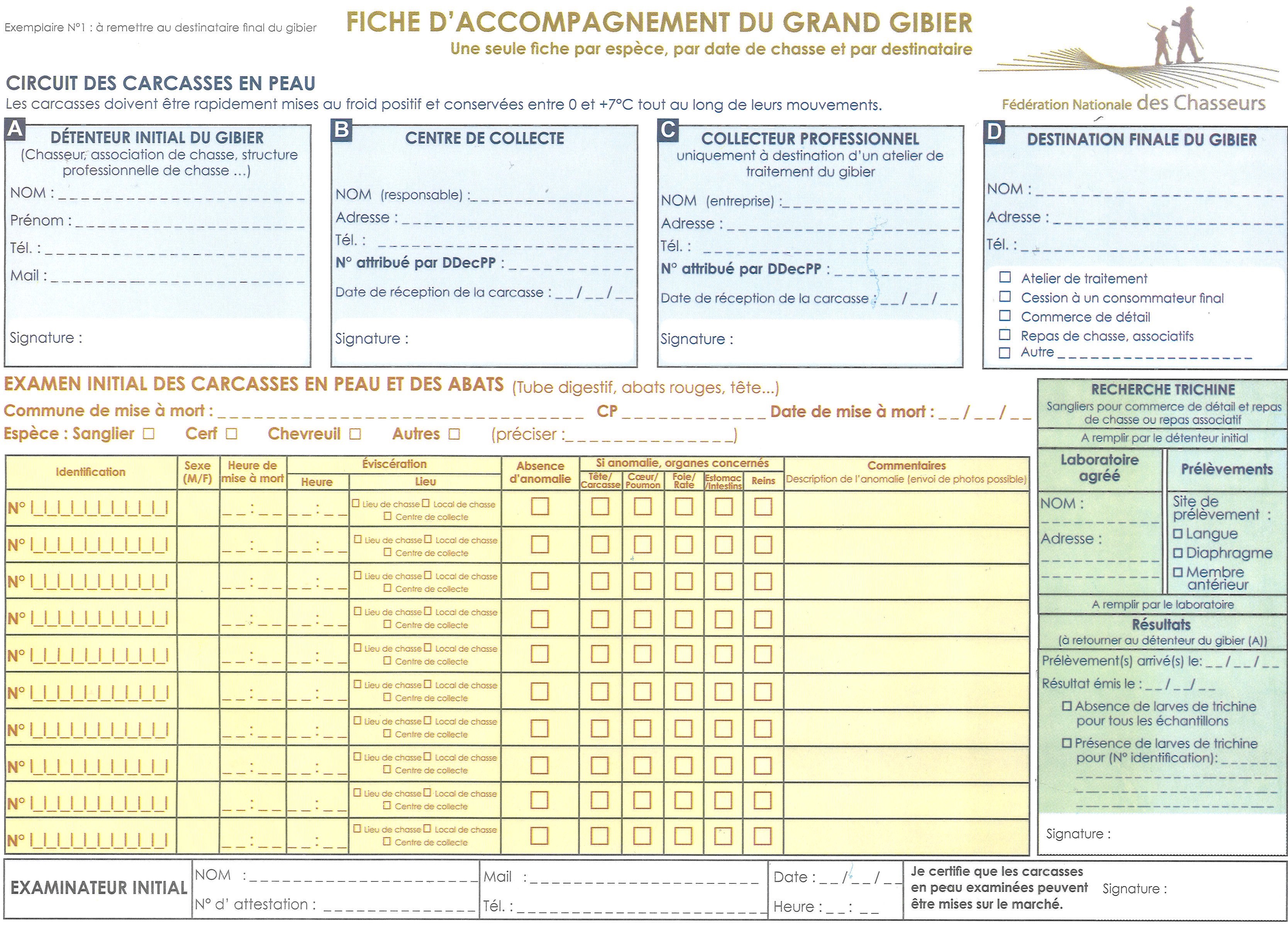 Rappel : Les fiches d'examen initial accompagnent les carcasses jusqu'à leur destination finale, afin d'assurer une parfaite traçabilité.