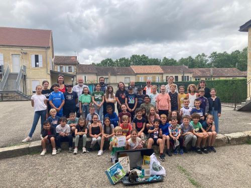 Le lundi 1er juillet, M. Serge CASTERAN président de la Fédération des chasseurs du Gers est venu à Fleurance remettre en main propre la récompense aux élèves de l'école Saint-Laurent grands gagnants du concours « Défi école Buissonnière », en présence de M. Christian MOTTA, Conseiller municipal délégué dans le domaine du terroir communal et de la biodiversité, et de Julien GARCIA, Technicien à Arbre & Paysage 32.