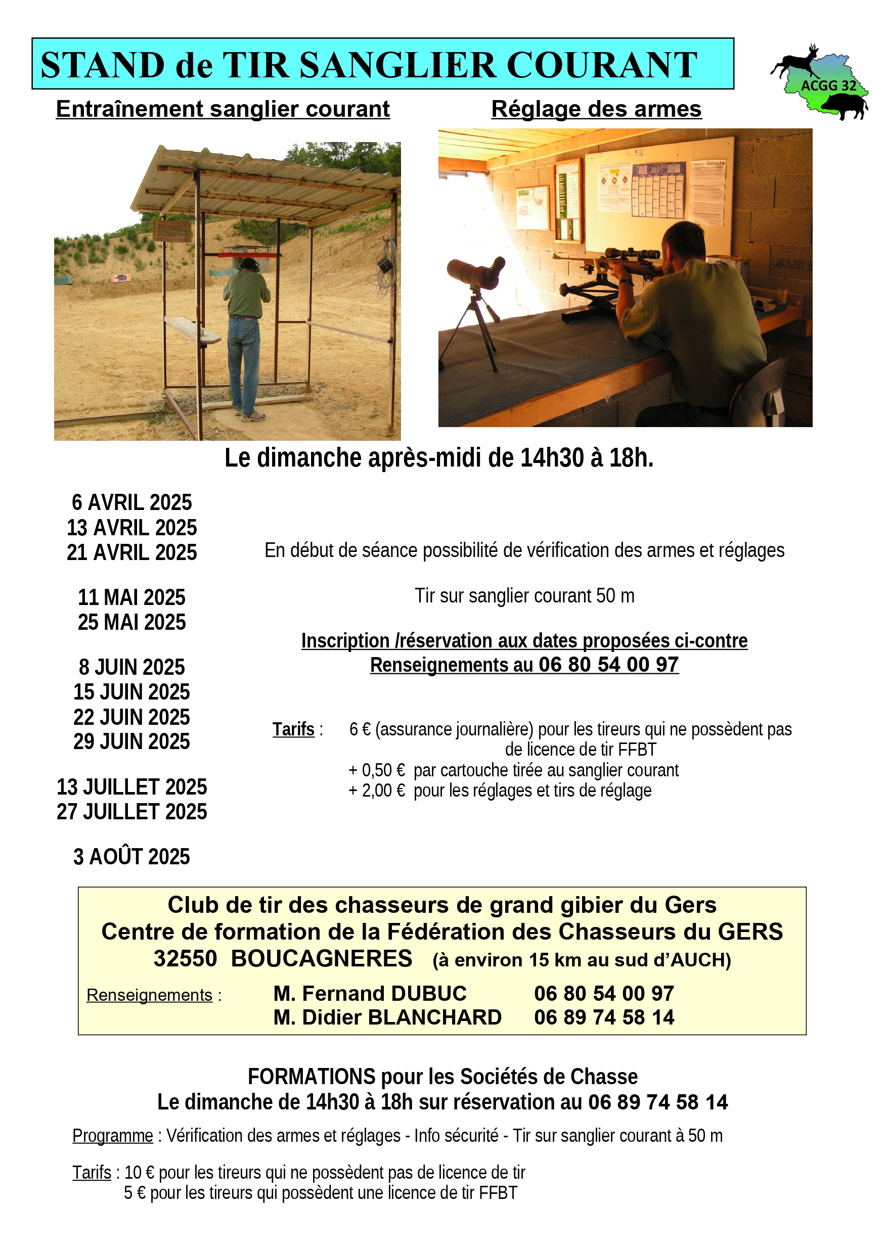 L'Association des Chasseurs de Grand Gibier du 32 propose des séances de réglage des armes ainsi que des entraînements au sanglier courant.