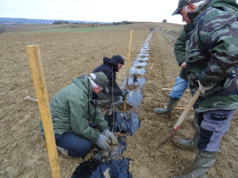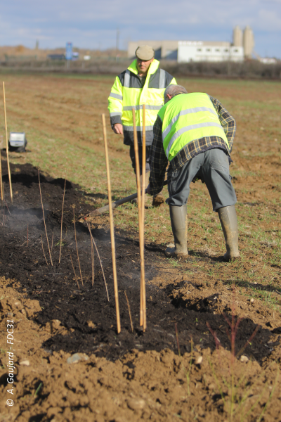 Du côté de Salles sur Garonne et St Julien, en partenariat avec la Cemex, 500 m de haies sont implantées avec les chasseurs du GIC Nère Louge.