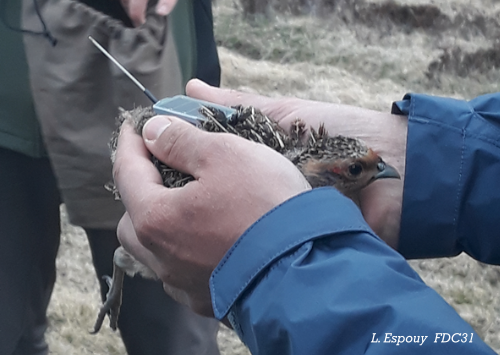 Les premières captures de perdrix sauvages ont été réalisées à Artigue, par les techniciens de la FDC31, une perdrix mâle a été équipée le 18 avril.