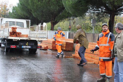 C'est sous la pluie que se déroule la 1ère journée de livraison des miradors, ce 7 novembre au siège de la Fédération à Toulouse.