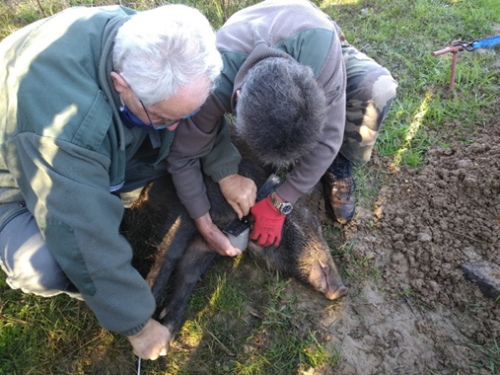 Ce matin, 18 novembre 2020, avec l'aide des Lieutenants de Louvèterie, un mâle de 60 kilos a été équipé d'un collier GPS sur la commune de Blagnac. Cette capture est particulièrement intéressante au vu de l'urbanisation et de la multiplication des infrastructures de transport sur le secteur Nord de l'agglomération toulousaine, en plus de problématiques strictement cynégétiques et agricoles (dégâts aux cultures, difficultés de régulation, etc.)