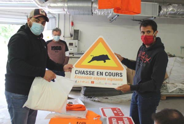 La FDC31 a remis à cette occasion à chaque association de chasse, un panneau Sécurité : « CHASSE EN COURS », financé par le Conseil Régional d'Occitanie.
