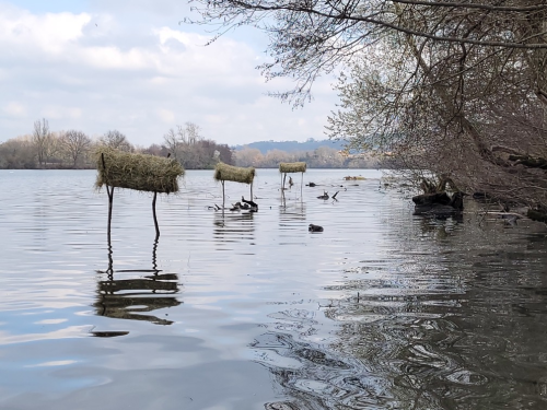 Rappelons que ces nids ont aussi une vocation de protection contre les prédateurs, qu'ils soient terrestres (comme le renard, la fouine ou le rat) ou aquatiques (becs droits ou goeland par exemple).
