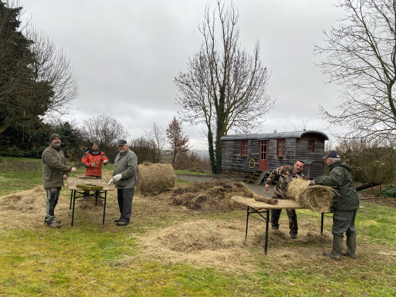 L'association avait à cœur d'initier ses adhérents et tous ceux qui le souhaiteraient à la fabrication, facile et économique, de nids tubulaires en grillage et foin.