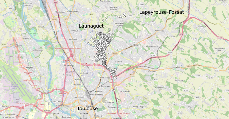 Une fois équipé, ce sanglier a rejoint la commune de Launaguet et le secteur des Combes qui présente une friche importante. Il s'est ensuite déplacé vers les bords de l'Hers et a fréquenté notamment une friche bordant le magasin « Castorama » de l'Union. Puis l'animal a utilisé l'Hers comme corridor écologique, en passant sous un ouvrage routier pour rejoindre les abords de l'échangeur A62/A68, plus au Sud.