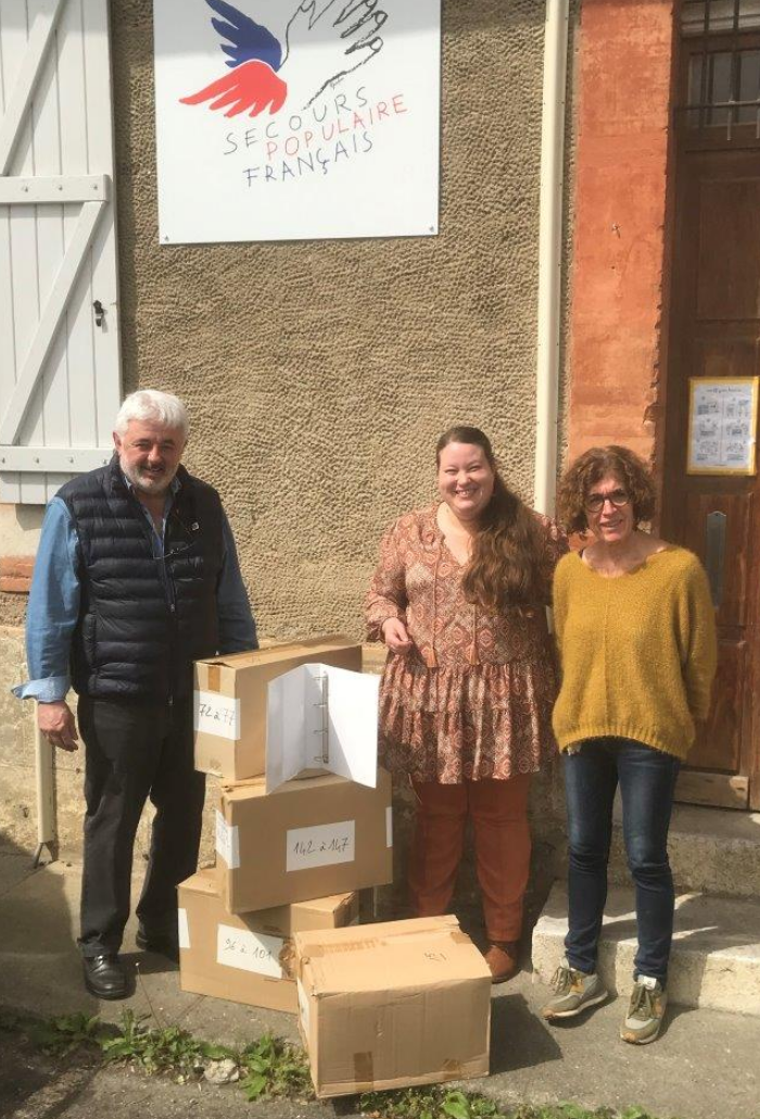 C'est auprès du Secours Populaire Français de St Gaudens que Jean-Bernard PORTET, Président de la Fédération des Chasseurs de la Haute-Garonne, a remis plus de 300 classeurs.