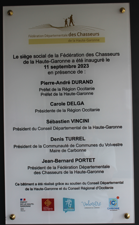 Le nouveau siège social de votre Fédération des Chasseurs à Carbonne est entré en activité en mai 2022 grâce au soutien financier du Conseil Départemental de la Haute-Garonne et de la Région Occitanie. En plus des personnels fédéraux, il accueille la Fédération Régionale des Chasseurs d'Occitanie, l'Association des Piégeurs et l'Association des Gardes Particuliers ; la salle de conférence est ponctuellement mise à disposition de nos partenaires et des associations locales pour contribuer au développement économique et associatif local.