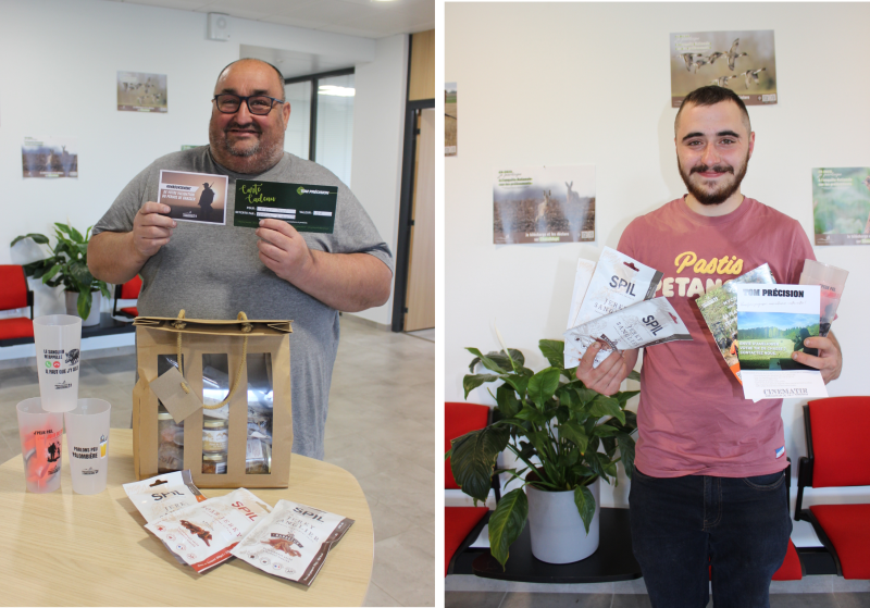 M. David RIBET (n°331) gagne le premier lot : remboursement de la validation du permis de chasser, 3 abonnements Cocagne, 1h de Cinématir Tom Précision, 1 invitation en battue, 4 places du Game Fair, 1 coffret venaison Gabaiti, 1 t-shirt FDC31, 1 lot de gobelets FDC31, et 1 lot de stickers FDC31 !