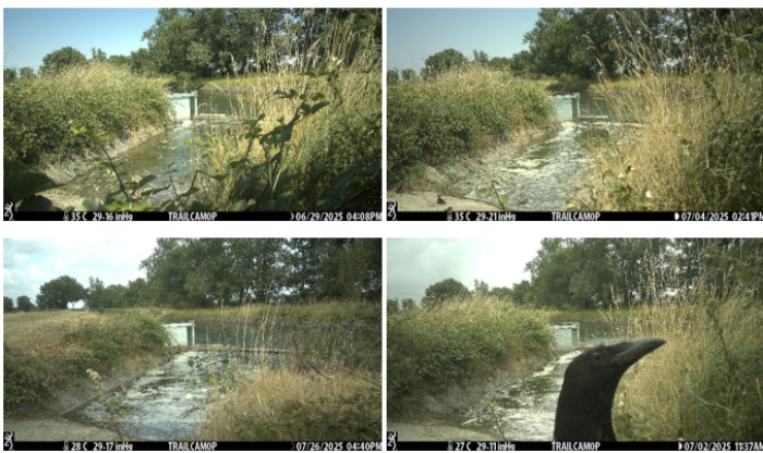 Pour suivre l'efficacité du dispositif, des pièges photographiques ont été installés. Et si aucun chevreuil n'a (encore) été observé, d'autres visiteurs ont rapidement adopté les lieux : Hérons garde-bœufs, Corneilles, Renards... et même une nichée de Canards colverts dont nous pouvons suivre la croissance semaine après semaine.