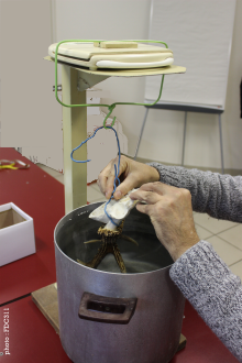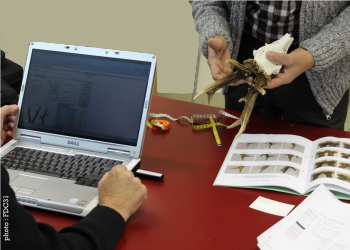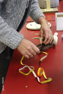 Nous avons observé les cotateurs officiels de l'AFMT (Association Française de Mensuration des Trophée reconnue par le CIC) : H. GOIZET, F. PERES et S. REDONNET pratiquer la cotation d'un trophée de chevreuil apporté par un chasseur de Fabas (31).