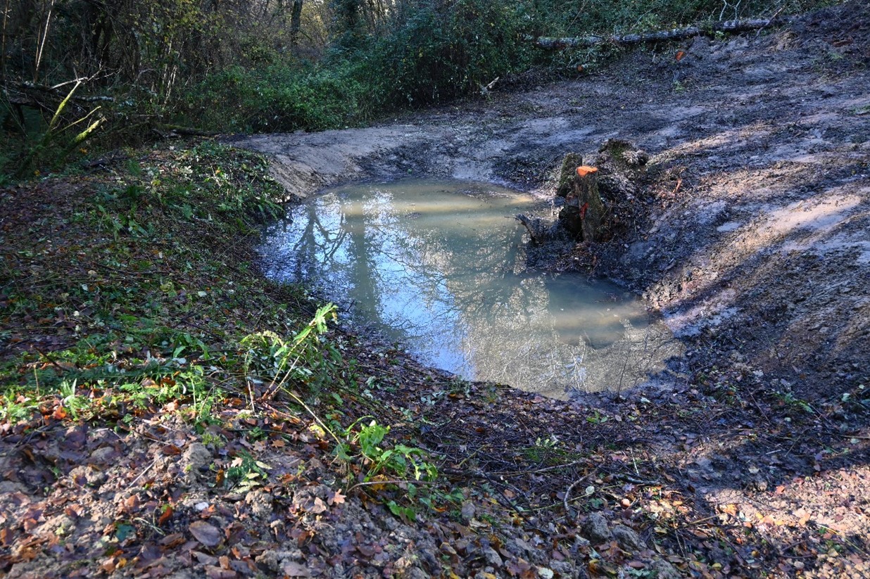 L'objectif est donc clair : débroussailler, élaguer et abattre les arbres devenus trop envahissants pour redonner « de la lumière » à cette mare. Un curage léger a également permis de rendre un peu de profondeur à cette mare jusqu'alors comblée par les nombreux dépôts issus de la végétation environnante.
