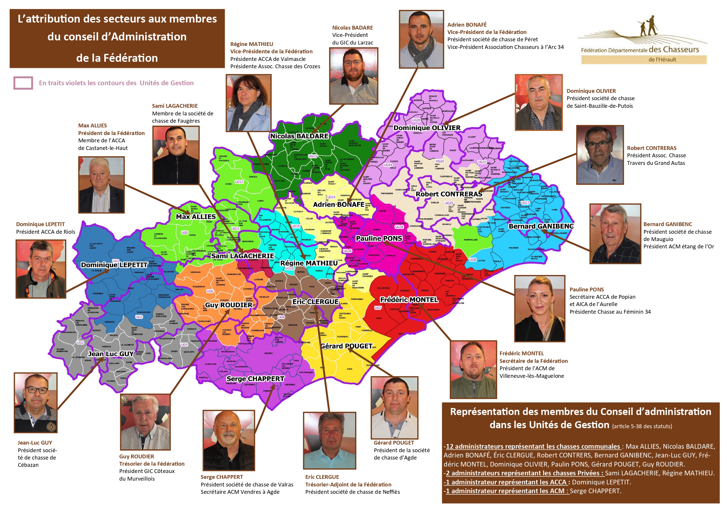 Le conseil d'administration assure une représentation par secteurs dans les 23 Unités de Gestion du département.