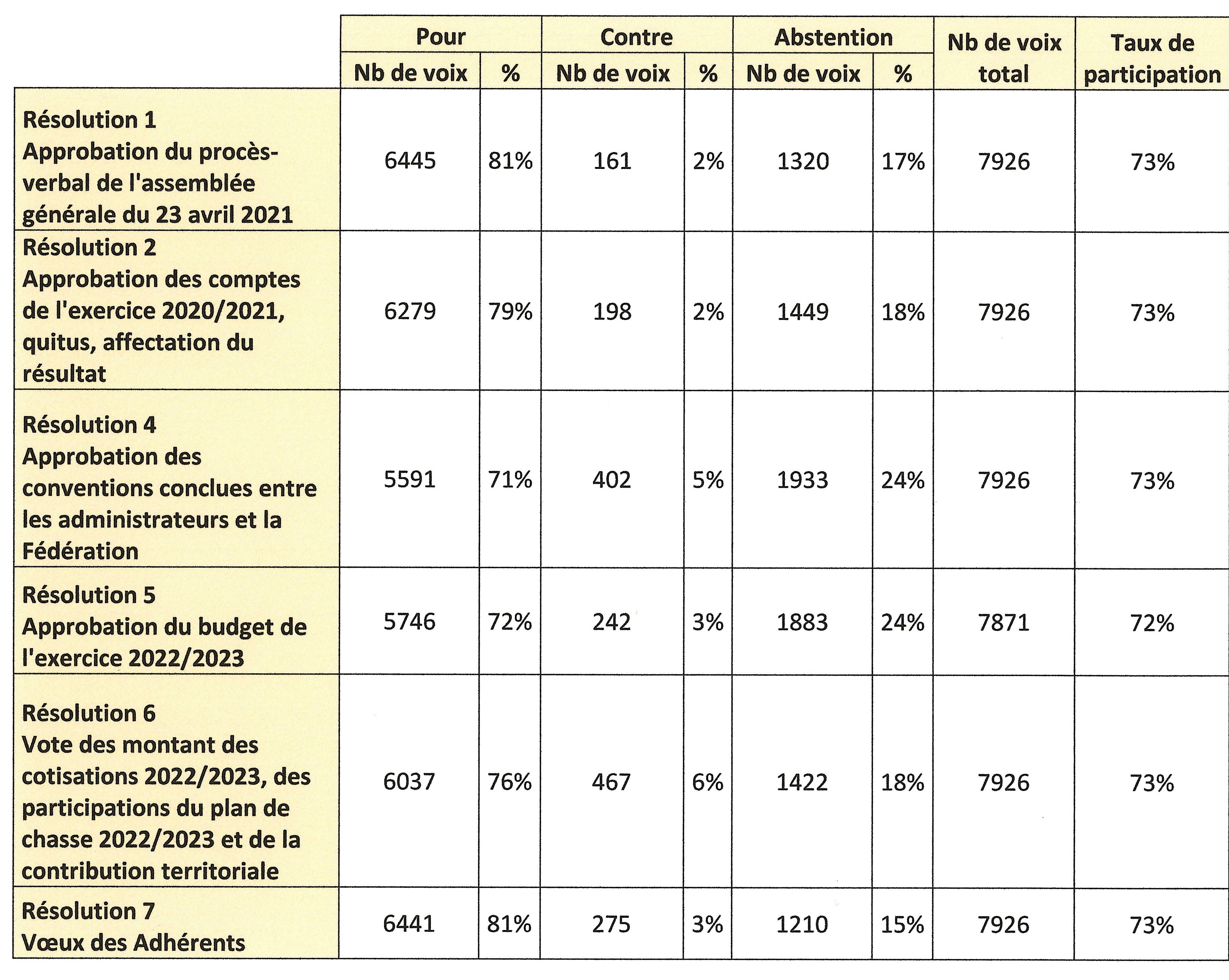 05-04-2022 Résultats des Elections de la Fédération Départementale des Chasseurs du Lot