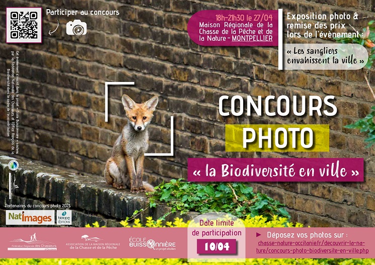 - le lien de la page du concours photo (renseignements et formulaire de participation) : https://www.chasse-nature-occitanie.fr/decouvrir-la-nature/concours-photo-biodiversite-en-ville.php ;