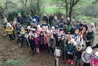 Dans le cadre du programme « Ilot de Biodiversité » * financé au titre de l'écocontribution, environ 30 personnes et 46 élèves de l'école de Gigouzac, se sont réunis le jeudi 07 décembre 2023 sur deux parcelles communales, munies de pelles et de pioches. Vingt arbres fruitiers (variétés anciennes et locales) ont été plantés ce jour.