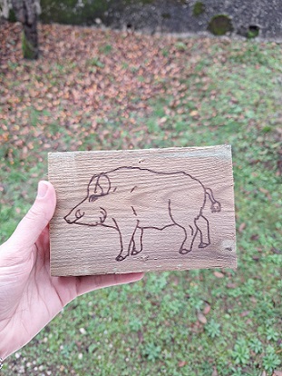 Les plaques de poste (dispositif signalétique en bois de 15x10 cm) sont conçues avec du bois acheté à un scieur lotois. Elles sont découpées, pré-percées et marquées par l'ESAT Boissor à Luzech (Etablissement et Service d'Aide par le Travail).