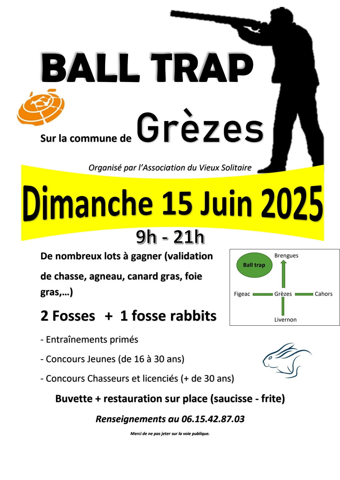 Veuillez trouver ci-joint, les dates de Ball Trap organisés par des sociétés de chasse dans le département du Lot.