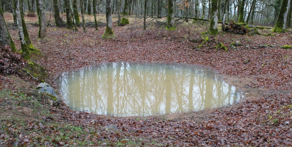 Les mares situées en forêt sont chaque année recouvertes de feuilles, ce qui accélère grandement leur comblement.