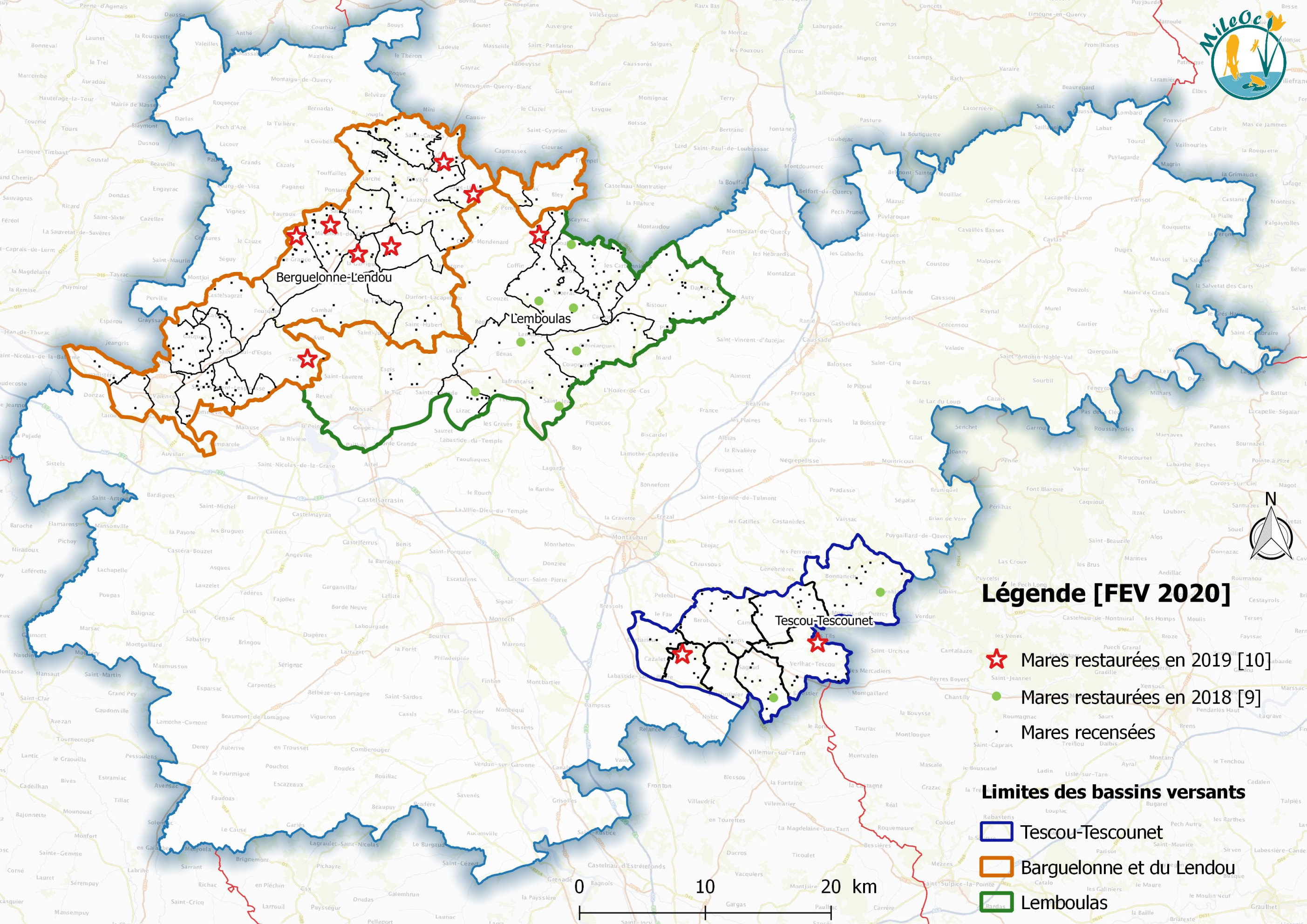 Les 10 mares, situées sur les communes de Cazes Mondenard, Miramont de Quercy, Montbarla, Reyniès, Saint-Nazaire, Sainte Juliette, Saint Amans de Pellagal, Saint Paul d'Espis, Tréjouls, et Verlhac Tescou ont ainsi été restaurées.