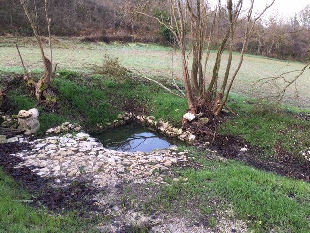 Légende des images : Mare de Tréjouls avant travaux (en tête d'article, Mars 2019) et après travaux (ci-dessus, Janvier 2020). Cette mare fut restaurée lors de la session de restauration de l'automne 2019, sur le bassin versant de la Barguelonne et du Lendou, bassin versant voisin des deux Séounes.