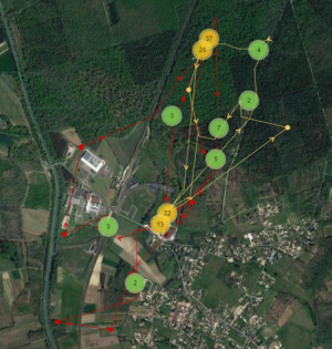 Environ 23 kilomètres à vol d'oiseau séparent le site initial de capture à Montbartier, de la zone de prélèvement à Castelmayran. Toutefois, ce mâle à en réalité parcouru une distance bien plus grande, franchissant des obstacles tels que la Garonne et l'autoroute A62.