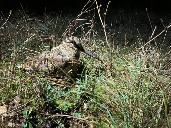 Par contre, les deux dernières sorties organisées, les 29 et 30 novembre, ont tout bonnement été exceptionnelles ! Pour la soirée du 29/11, nos techniciens ont eu le bonheur de se retrouver sous une « tombée » avec pas moins de 36 bécasses vues. Ce nombre est très élevé pour les deux zones prospectées ce soir-là. La pluie étant également au rendez-vous, la soirée s'est terminée avec un nombre record de 25 captures, dont 3 contrôles (un contrôle étant la capture d'une bécasse déjà capturée et baguée auparavant). Deux étaient des bécasses baguées en 2022, par la FDC 82, et la troisième avait été baguée par l'OFB en 2017 (toutes les trois à peu près sur le même secteur).