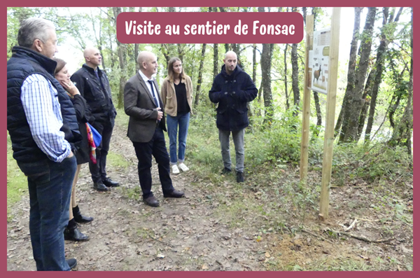 Le 14 octobre 2024, Thierry CABANES, président de la FDC82, a reçu sur le sentier pédagogique de Fonsac à Réalville la visite de Monsieur LE NORMAND, Directeur Académique des Services de l'Éducation Nationale (DASEN). Ce dernier était accompagné de Florian BIETH, Inspecteur de l'Éducation Nationale (IEN), et de Madame Alexandrine PELISSIER, principale du collège Manuel Azana, tous deux référents EEDD dans le département.